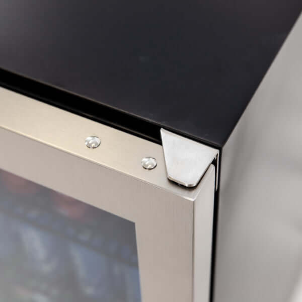 - With its compact 24-inch design and 5.8 cubic feet of space, this mini fridge features a stainless steel frame and triple pane tempered glass door from the DESIGNER Series.