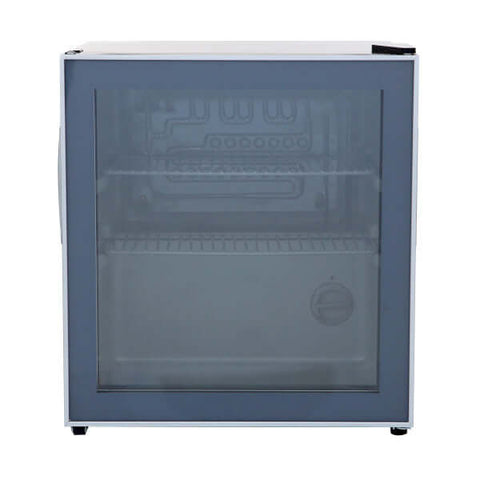 This compact 1.6 cubic feet refrigerator boasts a sleek platinum trim glass door and has a capacity of 1.6 cu. ft., making it the perfect mini fridge for any space.