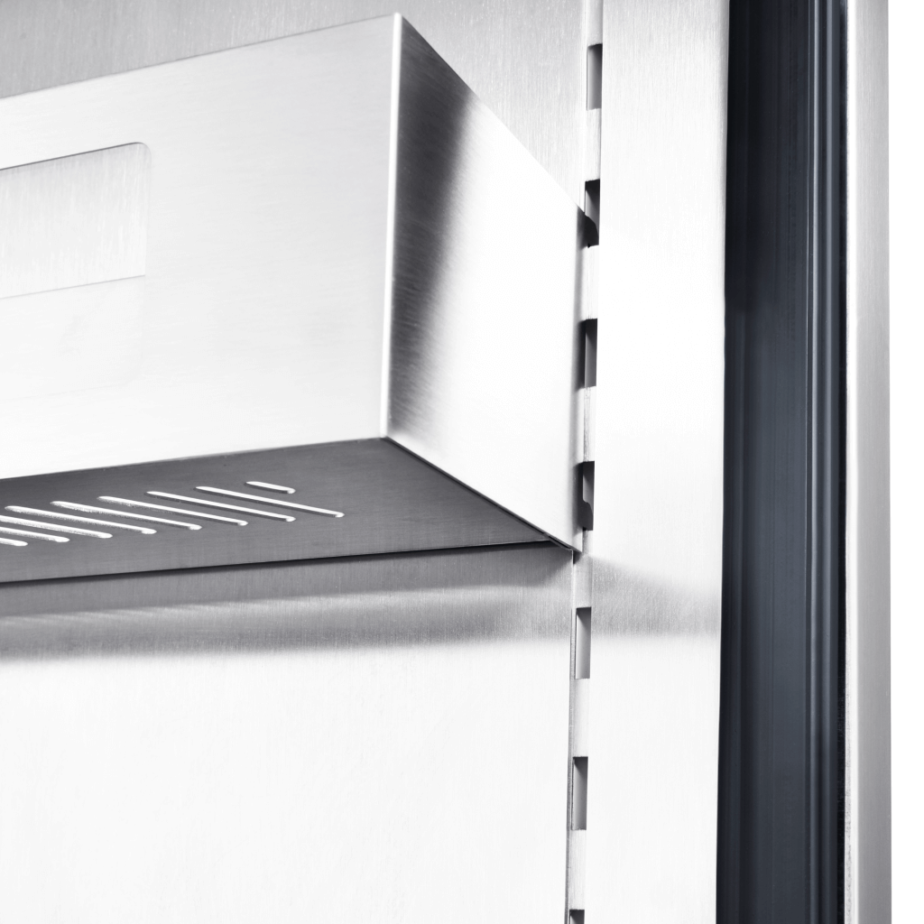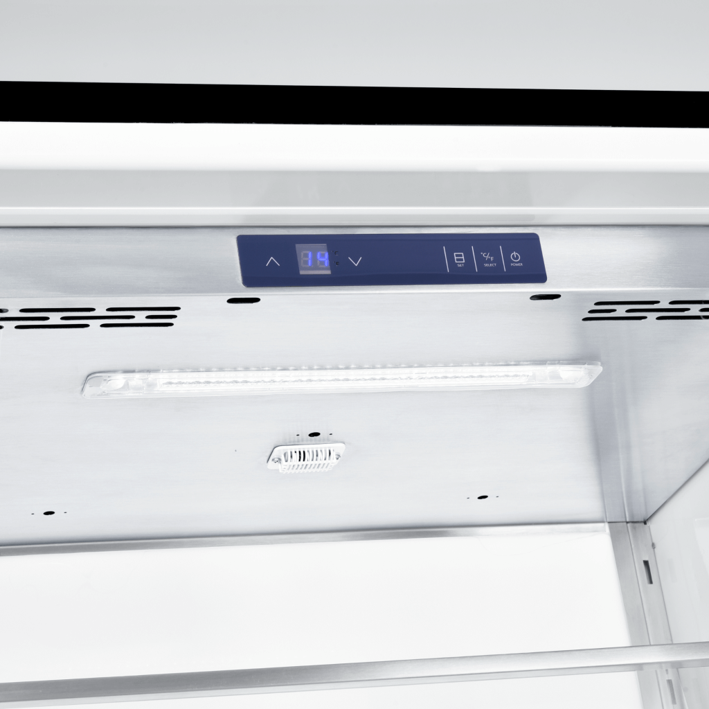 • The 201 stainless steel outer door construction provides superior strength and durability. The 304 stainless steel inner door panel and adjustable door baskets with front glass panel make this refrigerator extremely easy to access and keep items neatly organized.