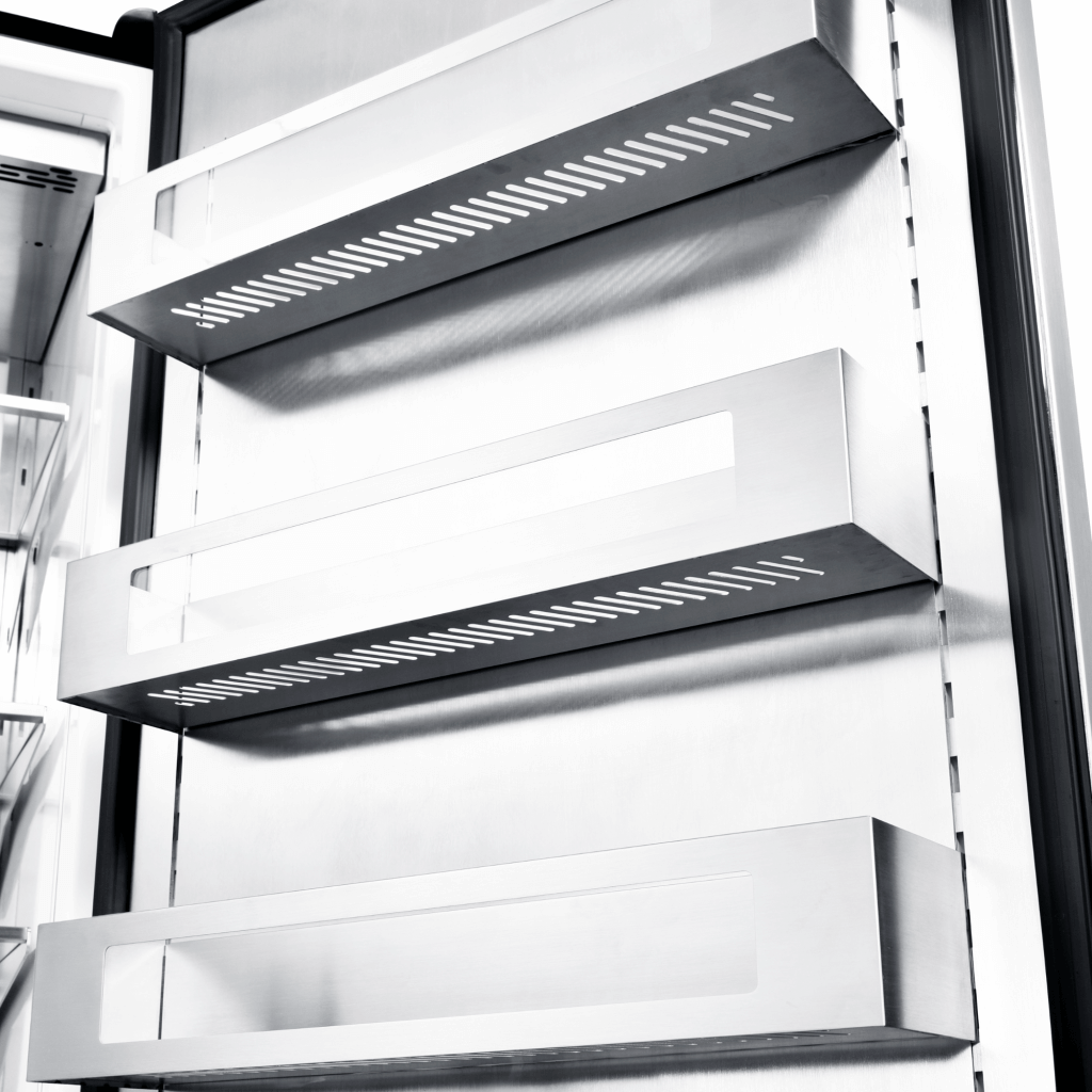 • The 304 stainless steel drawers with front glass panels give a modern and sleek look. The drawers also feature soft-close to ensure they stay securely shut.