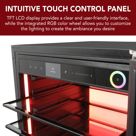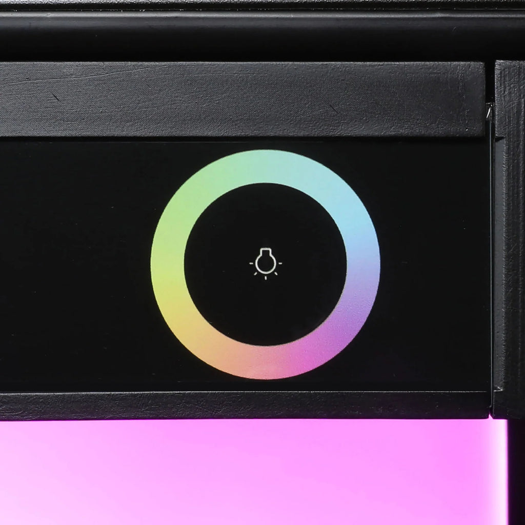 - Touch control panel with TFT LCD display and RGB color wheel.