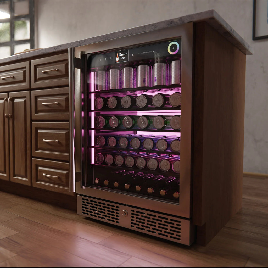- UV-resistant glass ensures beverage quality.