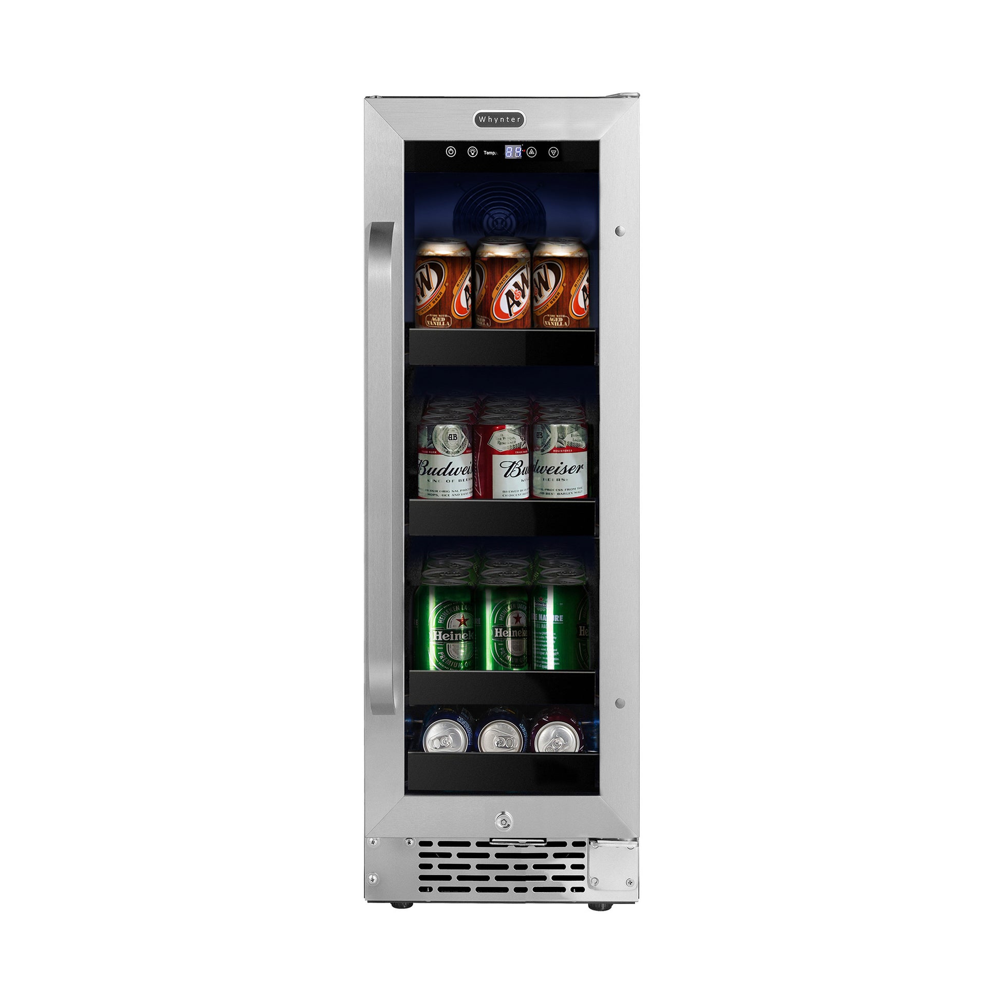 Efficiently store all your favorite beverages in one sleek and convenient appliance with the Whynter Undercounter Stainless Steel Beverage Refrigerator. This elegant, built-in, and freestanding unit will hold and refrigerate up to 75 standard 12 oz. cans. Specially Engineered to achieve ultra LOW temperature as low as 34 degrees Fahrenheit