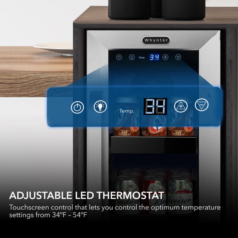 Keep your drinks fresh with the intuitive touch screen temperature control, which allows for temperature ranging from 34ºF – 54ºF. The unit cools efficiently using an internal fan-forced circulation system that distributes air evenly throughout the cabinet.