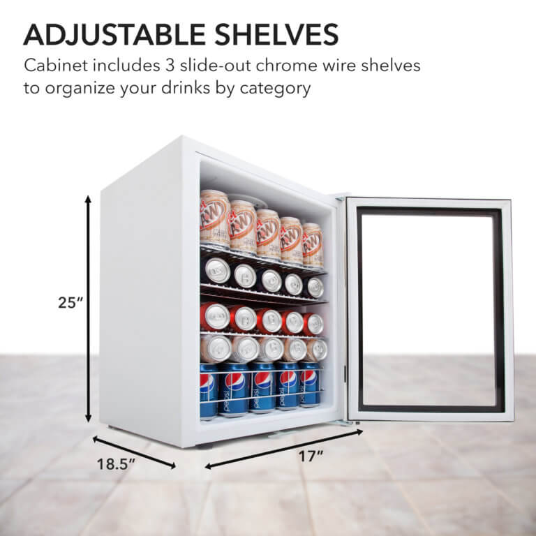 Unlike many budget beverage refrigerators, the Whynter 90 Can Stainless Steel Beverage Refrigerator utilizes premium features and design to provide a sleek showcase that will be centerpiece of any space. With its powerful compressor and internal air-cooled system, this beverage refrigerator creates an evenly-cooled space ensuring consistent temperatures throughout the beverage refrigerator.